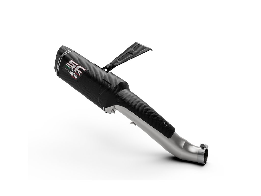 Kombinací závodních zkušeností společností Aprilia a SC Project vzniká tlumič výfuku pro RSV 4 a Tuono V 4, homologovaný pro silniční použití, vyrobený z titanu a potažený uhlíkovými vlákny pro sportovnější estetiku. Tlumič je vybaven držákem z uhlíkových vláken pro jeho upevnění na motocykl i v konfiguraci s jedním sedadlem. Použití titanu a uhlíkových vláken umožňuje dosáhnout snížení hmotnosti o 2–3 kg oproti standardnímu tlumiči, čímž se zlepšuje poměr výkonu a hmotnosti motocyklu. Tlumič také poskytuje nezaměnitelný zvuk inspirovaný závodními motocykly.
