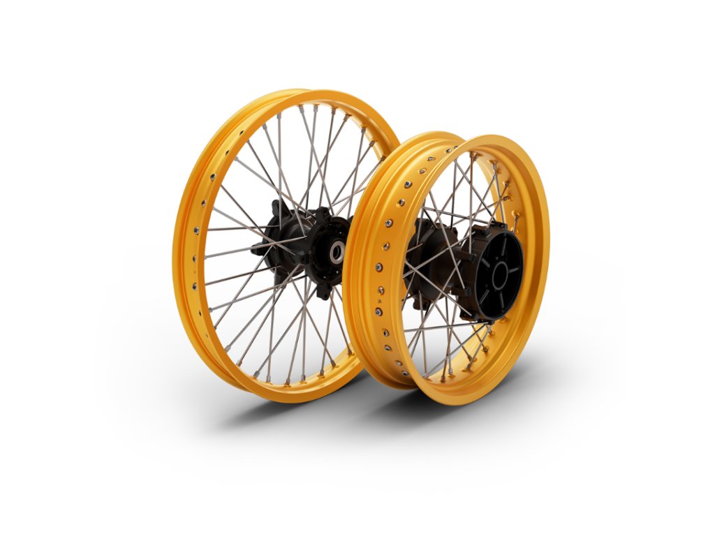Ráfky vyrobené z materiálu Ergal, lehké a super tvrdé hliníkové slitiny s velmi vysokou odolností, zajišťují díky tomuto speciálnímu materiálu pocházejícímu z letectví úsporu hmotnosti a větší odolnost na nerovném povrchu. Pokud se ráfek poškodí v důsledku náročného jízdního provozu, použití duše zabrání ztrátě tlaku v pneumatikách, což zajistí větší bezpečnost jízdy.