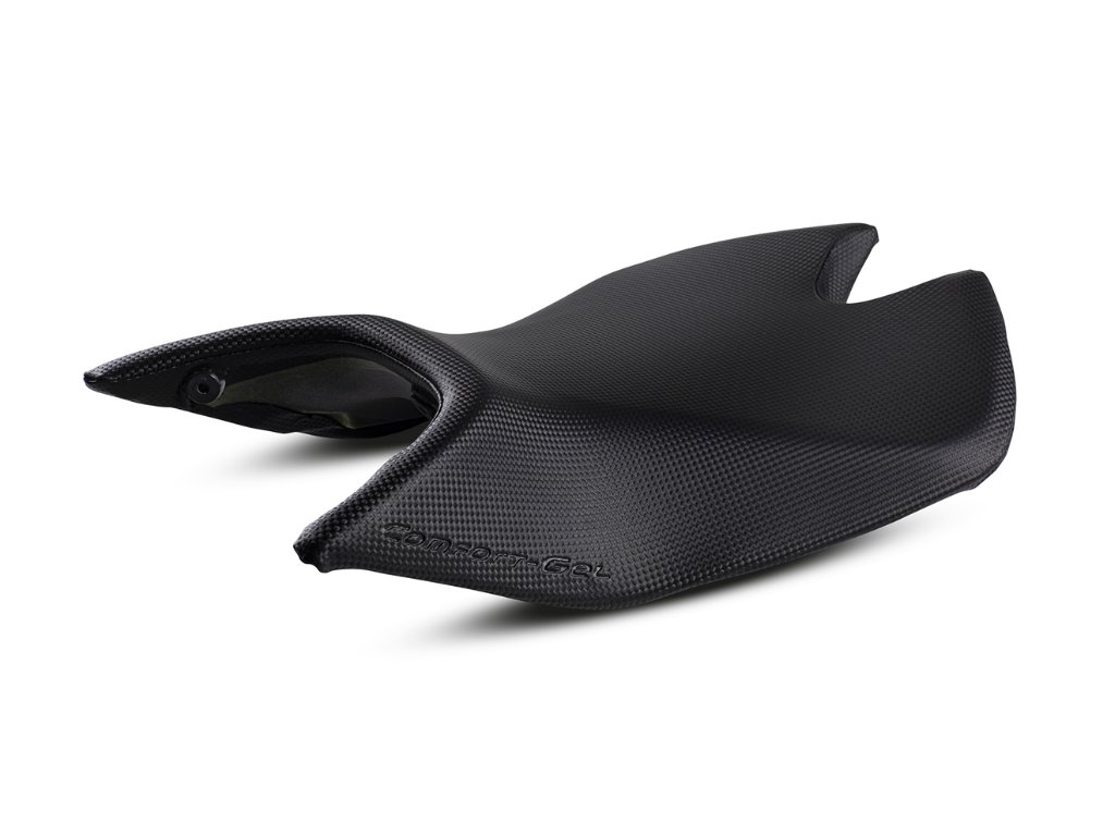 Sedlo polstrované gelem, vyrobené z karbonového materiálu pro závodní atmosféru. Vyvinuto ve spolupráci s designovým oddělením Aprilia. Maximální přilnavost pro jezdce. Pro uživatele, kteří požadují maximální pohodlí a styl.