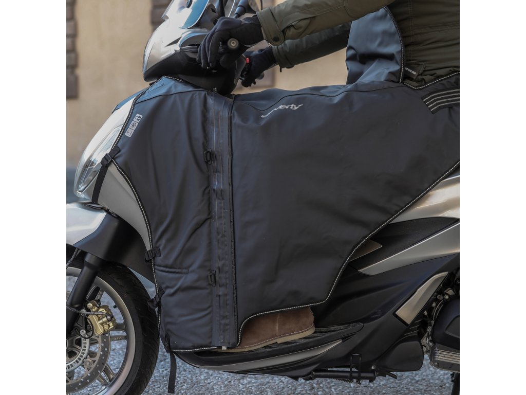 Nový koncept „high-end“ krytu nohou pro zlepšení celoročního jízdního komfortu: navržený podle tvaru vozidla, voděodolný, modulární a snadno upravitelný podle klimatických podmínek. TPU povrchová úprava, inovativní systém proti vlnění se stabilizačními vložkami, ochrana proti krádeži, kryt vyhřívaného systému a reflexní grafika a logo.