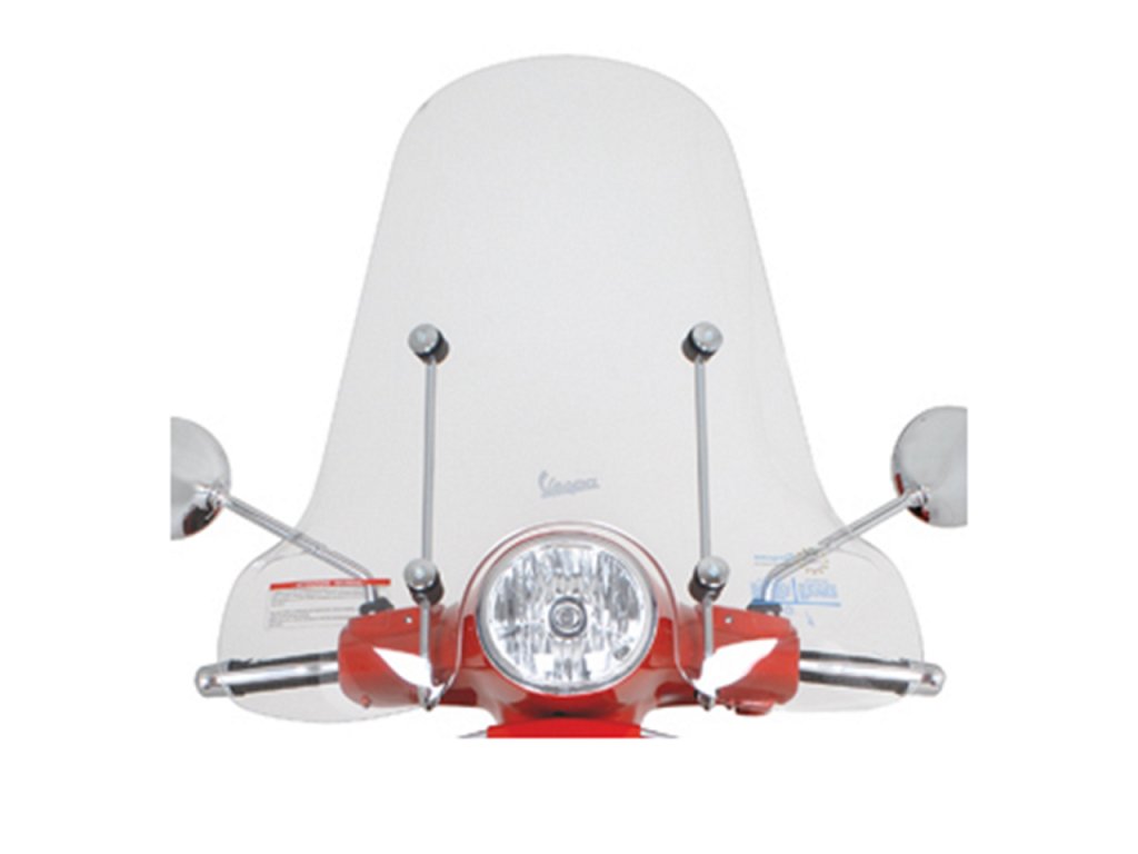 Vyroben z metakrylátu odolného vůči nárazům, s tloušťkou 4 mm, výška cca 730 mm, šířka cca 690 mm. Včetně prvků pro připevnění. S logem Vespa.