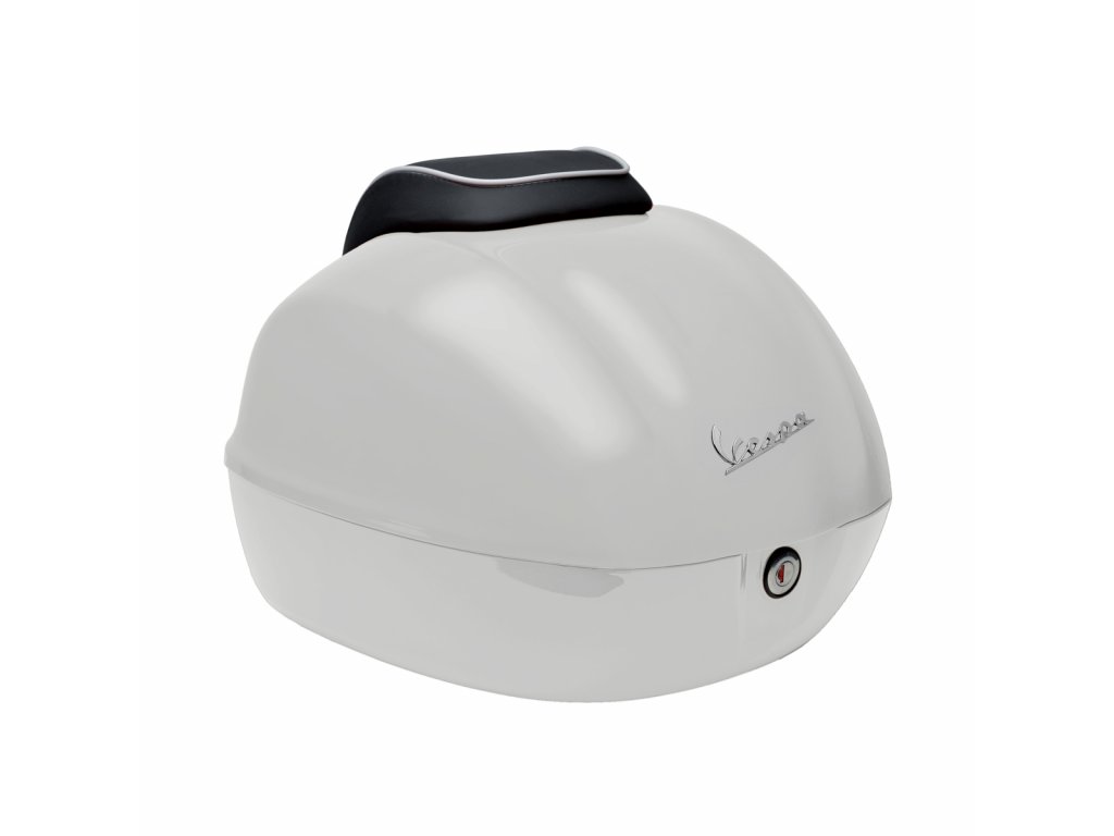 Objem 32 litrů, lakovaný v barvě skútru s chromovaným logem Vespa