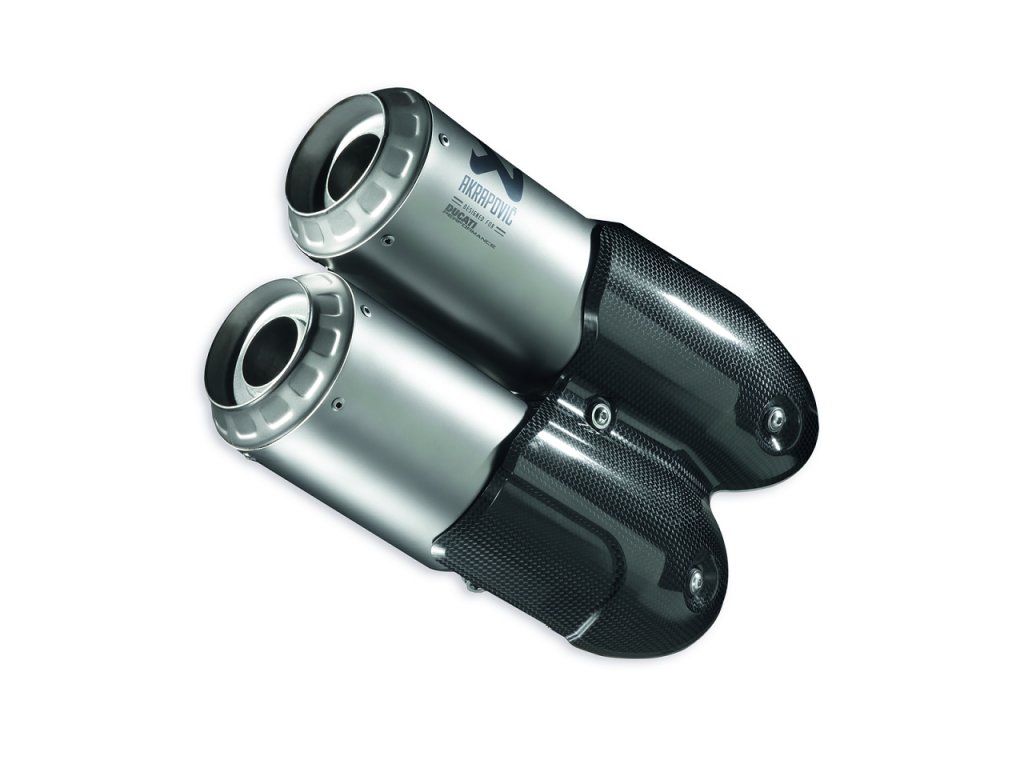Titanové koncovky, spolu s karbonovými chrániči. Vyráběno ve spolupráci s Akrapovičem.