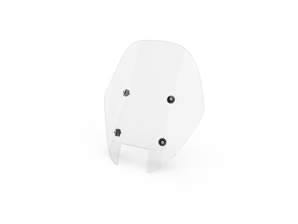 Zvětšené čelní sklo navržené stylistickým centrem Moto Guzzi s tvarem, který dokonale odpovídá liniím motocyklu. Celková plocha přední roviny se zvětšuje o 35 % ve srovnání se standardním čelním sklem. Vyvinuto v aerodynamickém tunelu pro ověření jeho lepší aerodynamické ochrany poskytuje jedinečný jízdní komfort na dlouhých cestách.