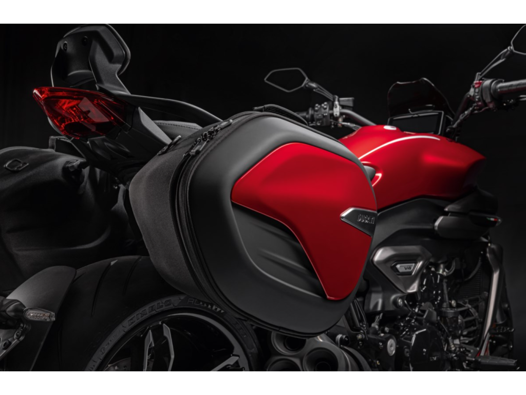 Vysoká kvalita materiálů je kombinována s liniemi v dokonalém stylu XDiavel, a to v doplňku, který umožňuje vybrat si barvu bočních brašen, a přizpůsobit tak vzhled kola a vylepšit ho stylovým nádechem, který nezůstane bez povšimnutí.