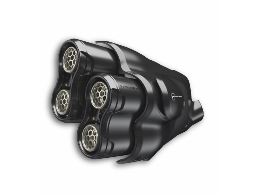 Sportovnost, lehkost a pevnost. To jsou charakteristiky krytu tlumiče výfuku pro homologovaný výfuk. Titanové koncovky a černě eloxovaný hliníkový tepelný kryt vylepšují design standardního systému a činí ho ještě atraktivnějším.